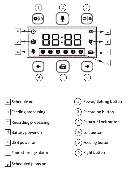 - Auto Feeding Time : 1-6 meals per day